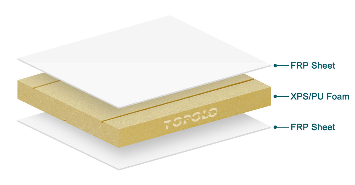 Les matériaux composites PRF (plastique renforcé de fibre de verre) remplacent les panneaux métalliques pour la construction des carrosseries de camions frigorifiques, ce qui constitue une percée dans la technologie de construction de carrosserie. Les matériaux PRF sont légers, imperméables et isolants thermiquement, ce qui en fait des matériaux idéaux pour les revêtements de carrosserie de camions réfrigérés. TOPOLOGROUP combine de manière créative le PRF thermodurcissable avec le PRF thermoplastique (CFRT-continuous fiber reinforced thermoplastic), ce qui rend la carrosserie du camion réfrigéré belle en apparence, facile à nettoyer, durable et rentable.