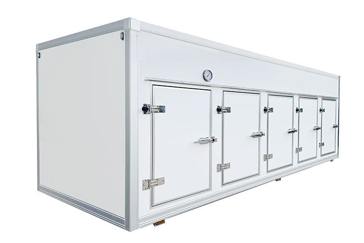 Il n’y a pas d’espace entre les panneaux de la boîte, et des joints en caoutchouc haute performance sont utilisés entre les panneaux de porte et les cadres de porte, ce qui le rend complètement étanche. L’ensemble de la boîte est fabriqué à partir de matériaux à faible conductivité thermique, et le problème du pont thermique est éliminé aux coins de la boîte. L’unité de réfrigération a une faible consommation et un effet d’isolation thermique élevé. Grâce à d’excellentes performances d’isolation thermique, même en cas de défaillance de l’unité de réfrigération, la basse température interne peut encore être maintenue pendant plusieurs heures à température normale.