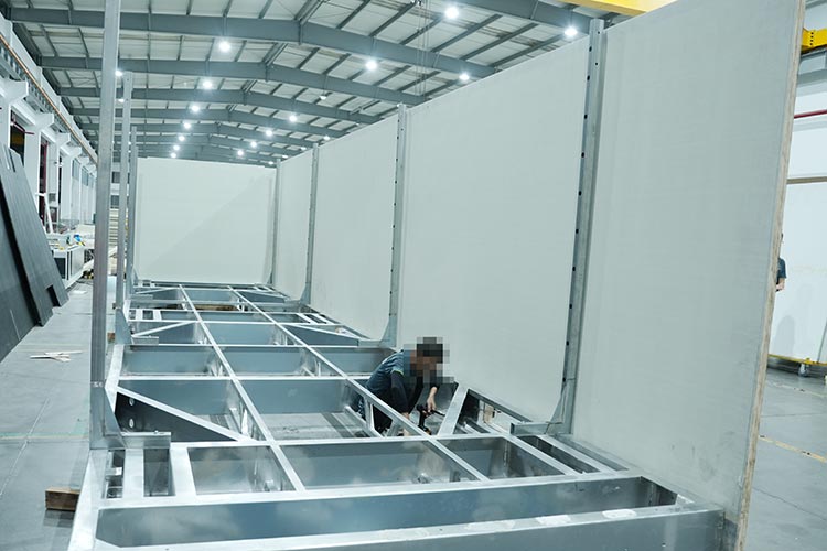 - Comparé aux panneaux alvéolaires plats en fibre de verre, ce matériau présente une surface texturée antidérapante. Il offre une résistance élevée au frottement et une excellente étanchéité, ce qui le rend idéal pour les zones de chargement des camions de transport de marchandises sèches.