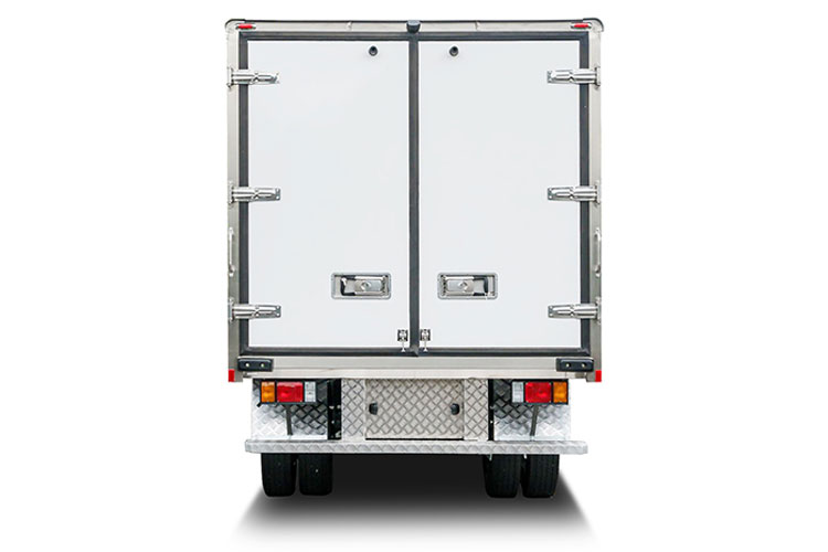 La carrosserie du camion est revêtue de panneaux sandwich en PRV (plastique renforcé de fibres de verre) avec une isolation thermique performante. D’une épaisseur totale de 100 mm, ces panneaux offrent une excellente isolation. La finition gelcoat brillante assure un aspect lisse et uniforme, tout en garantissant une résistance supérieure aux intempéries et à la corrosion. Les accessoires de carrosserie sont disponibles en alliage d’aluminium haute résistance ou en acier inoxydable, offrant ainsi un équilibre optimal entre légèreté et durabilité. Cette conception allie isolation, robustesse et longévité, ce qui la rend idéale pour le transport sous chaîne du froid et les applications logistiques exigeantes.