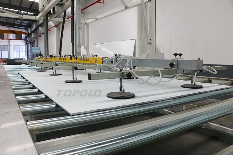 Le panneau composite est transmis à la position spécifiée par le rouleau, puis il est inspecté et emballé.