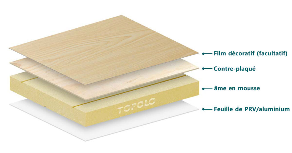 NoyauMousse XPS (polystyrène extrudé). (Densité : 35-50kg/m³).