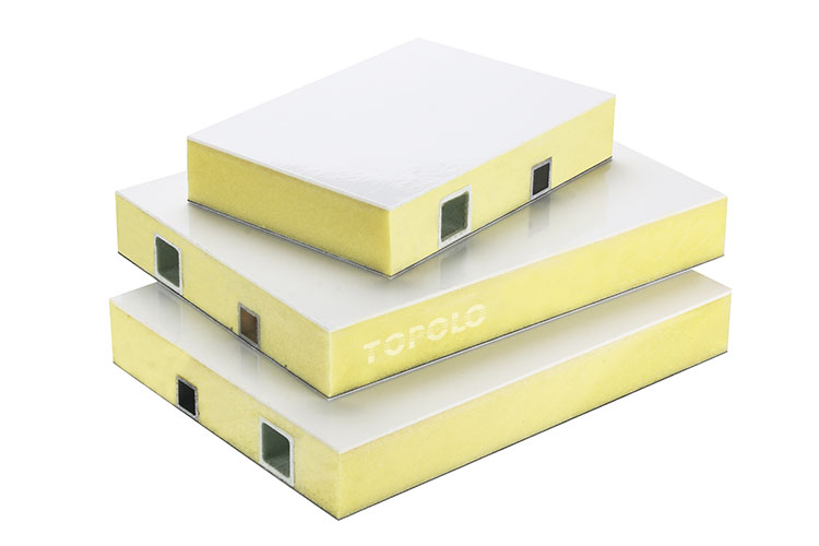 - Des tubes en fibre de verre ou des tubes en aluminium sont intégrés à l’intérieur du panneau pour améliorer la résistance structurelle du panneau.