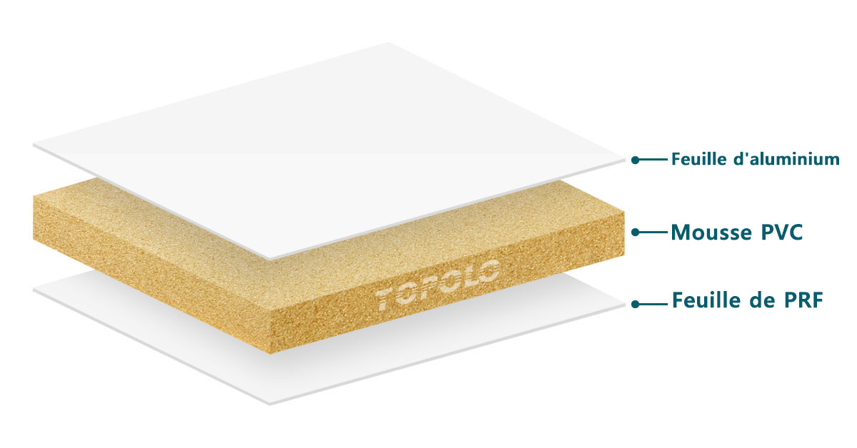 - Matériau de base : mousse de PVC (chlorure de polyvinyle). (Densité : 40-250kg/m³)