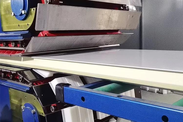 En utilisant le principe du tambour, la plaque métallique est placée sur une plaque de convoyeur spécialement conçue, et le dispositif de pulvérisation pulvérise l’agent moussant PIR sur la tôle. Après un traitement à haute température, l’agent moussant se forme entre les tôles. Nous pouvons produire différents types et qualités de panneaux PIR en fonction des besoins du client. La ligne de production de panneaux sandwich adopte un processus de moussage continu, qui peut terminer le dosage en une seule fois, et peut ajuster la proportion en ligne à volonté en fonction de la température, afin de produire des panneaux de construction de haute qualité.