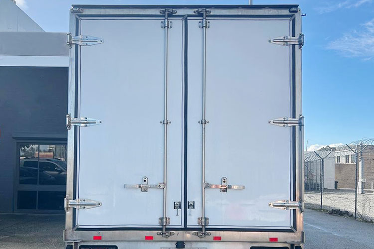 Utilisant des panneaux sandwich PRF à âme en mousse PU (polyester) ou XPS (polystyrène extrudé) comme matériaux de panneau de porte, ce matériau est non seulement léger, mais possède également une excellente résistance aux chocs et une isolation thermique, ce qui convient très bien au transport de marchandises nécessitant un contrôle de la température.