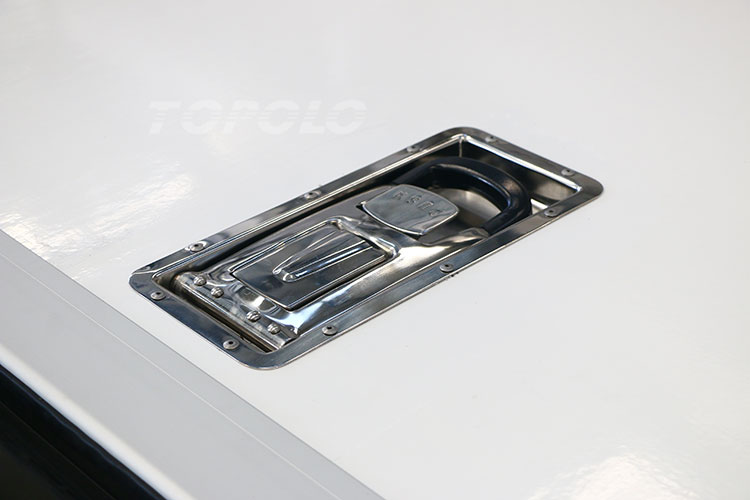 Le revêtement extérieur du panneau de porte est constitué d’une plaque CFRT (thermoplastique renforcé de fibres continues), un matériau composite composé de fibres de verre continues et de polypropylène thermoplastique (PP). Il offre une résistance aux chocs supérieure et une meilleure protection que les plaques en PRV thermodurcissable ou les plaques d’aluminium de même épaisseur.