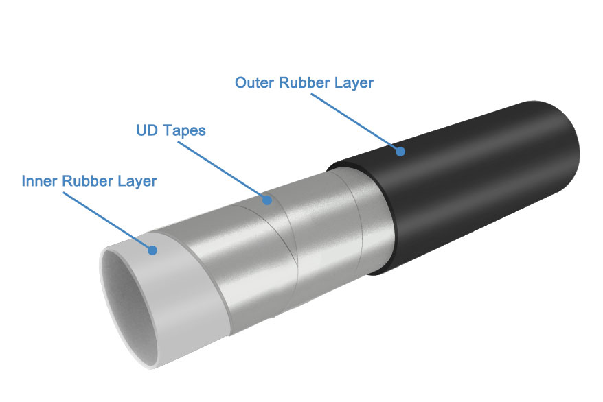 Le tube de revêtement extrudé est enroulé à plusieurs reprises en spirale avec un ruban unidirectionnel renforcé pour former la couche de renfort requise, puis extrudé et recouvert d’une couche de gaine externe. Parce que le ruban unidirectionnel est très fin, il doit être enroulé à plusieurs reprises en plusieurs couches, généralement 4 à 10 couches ou plus, et le chauffage et la pressurisation sont nécessaires pendant l’enroulement.