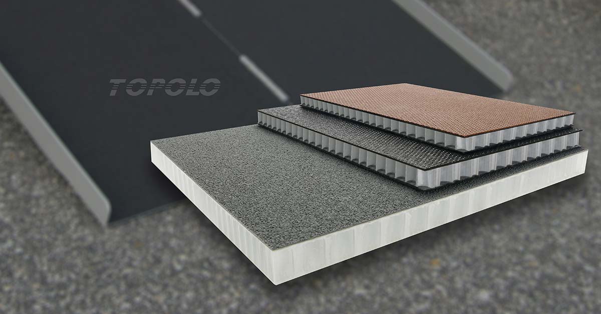 Les panneaux en nid d’abeille ont un excellent rapport résistance/poids. La structure centrale réduit l’utilisation de matériaux tout en maintenant une rigidité élevée, ce qui facilite le transport et l’installation des rampes.