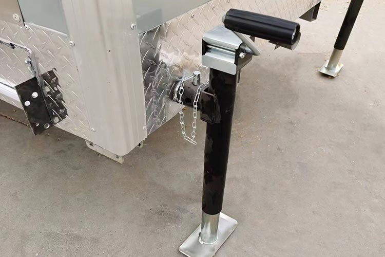 - Le corps de la boîte est constitué d’un nouveau type de panneau sandwich en fibre de verre, le matériau de base est une mousse isolante à faible conductivité thermique et la surface est en PRF de gel coat résistant aux UV. Le nouveau matériau composite améliore la durabilité et le confort de la remorque de toilette portable.